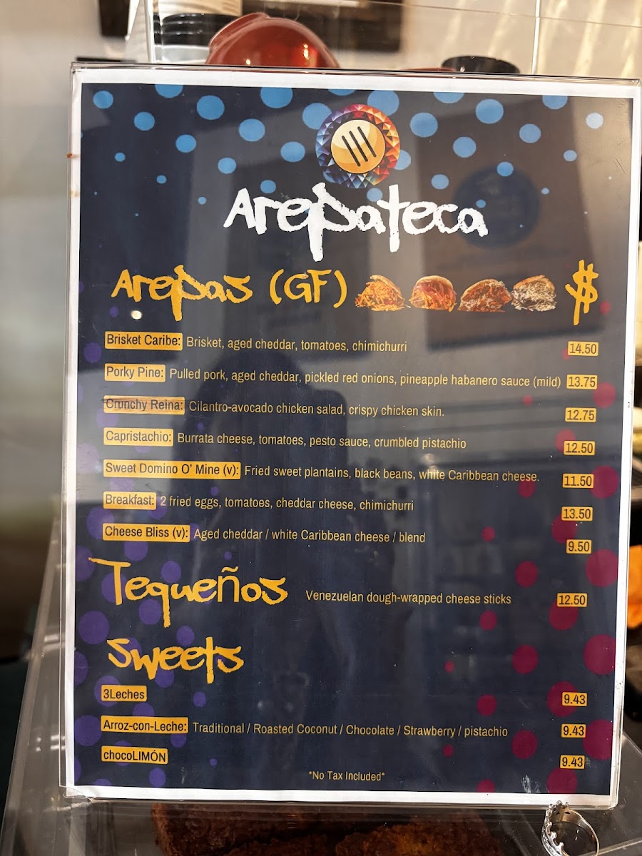 Arepateca Menu